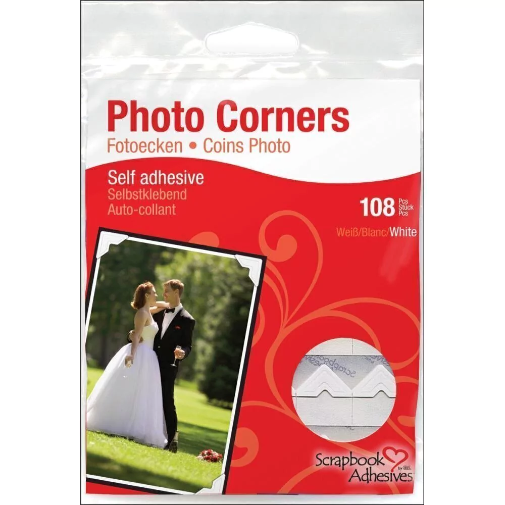 Monte sus fotos favoritas con facilidad. Simplemente coloque estos esquineros decorativos en la foto, y adhieralos en donde desee, manteniendo la foto en su lugar, sin necesidad de pegar encima de la fotografía.
