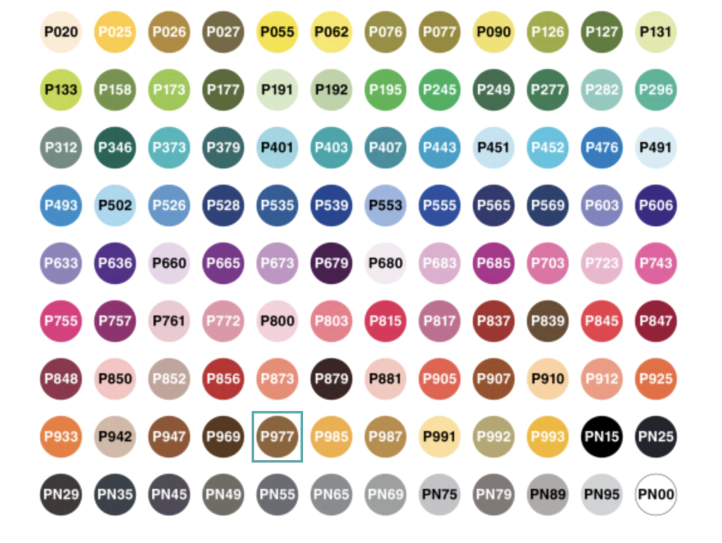 Hay 18 colores que son exclusivos del ABT PRO, incluidos: P077, P191, P127, P282, P502, P539, P660, P633, P680, P683, P839, P907, P848, P881, P852, P987, PN69 y PN29.