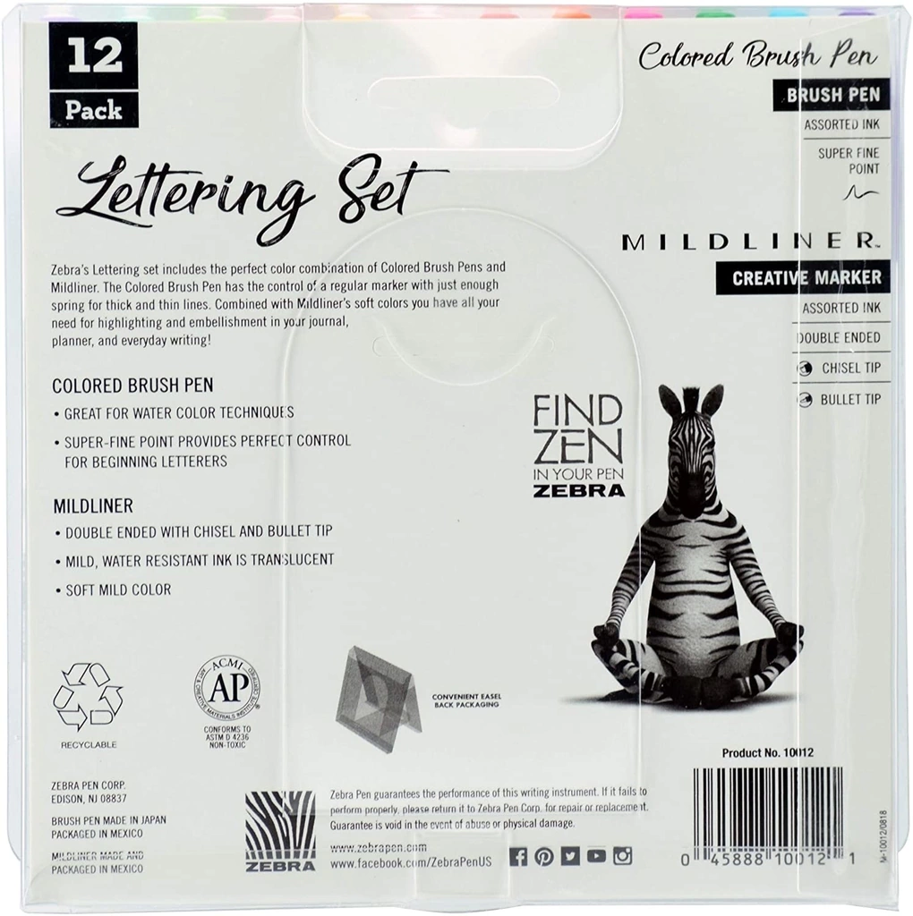 Este set contiene 12 colores: 6 de doble lado, punta pincel y punta super fina y 6 de doble lado punta bala y punta biselada