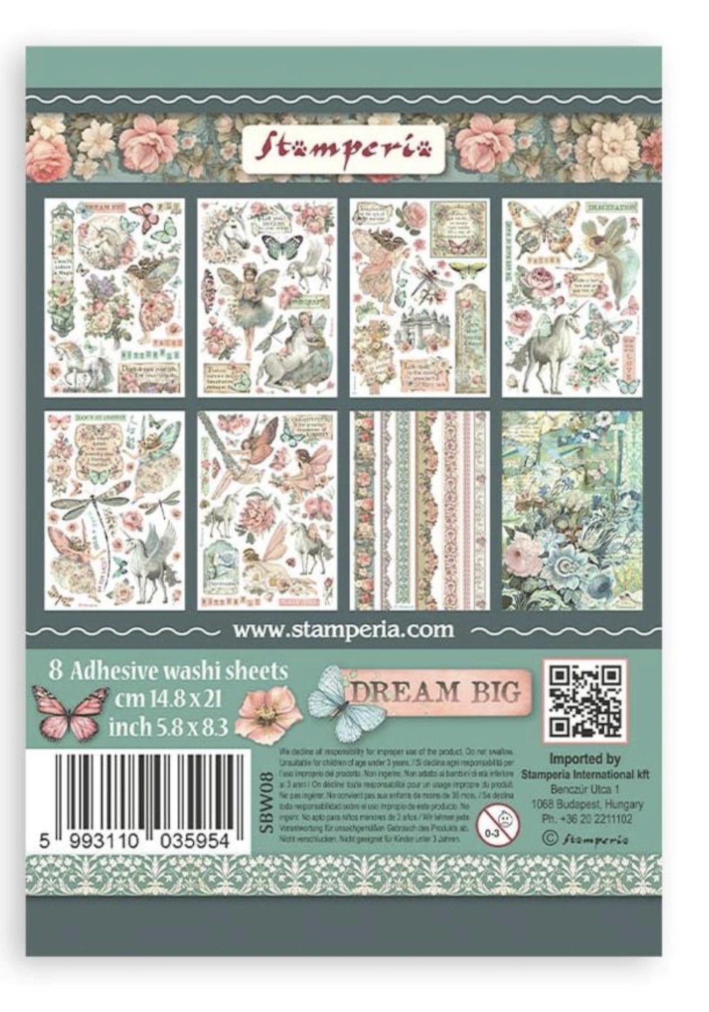 Set de 8 Hojas Washi Tape Wonderland Stamperia