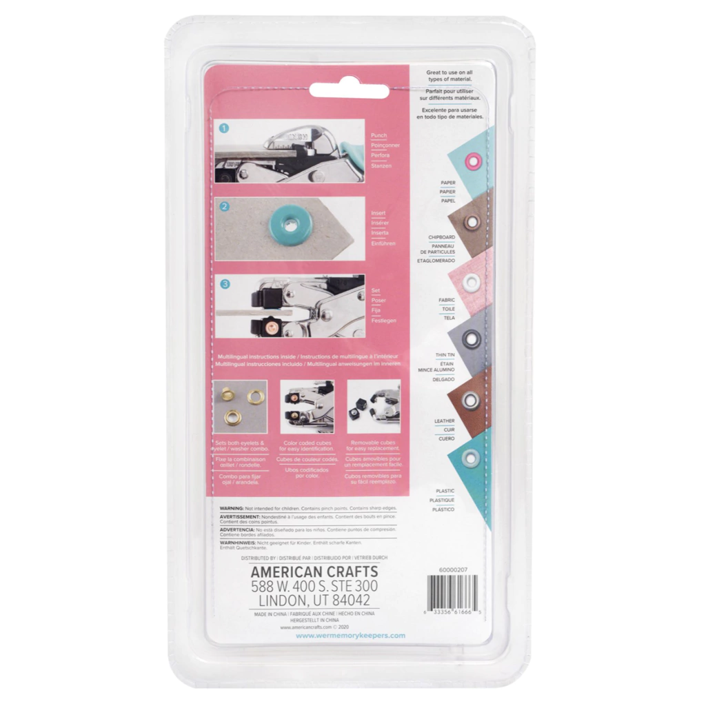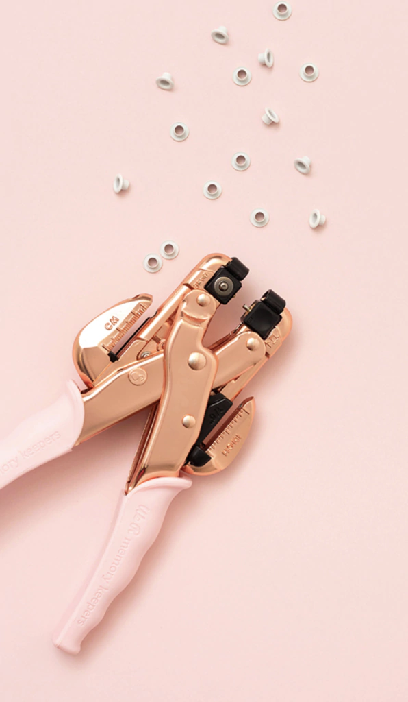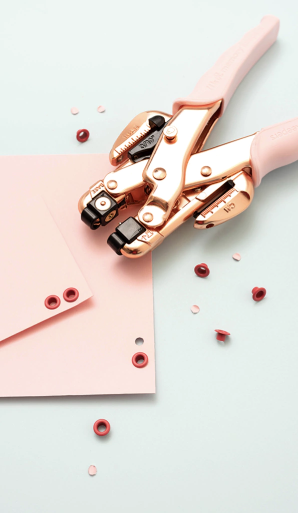 Perfora de 0,3cm y 0,48cm. - Coloca Ojalillos de 3mm a 8mm. La medida estándar de ojalillos es de 5mm.