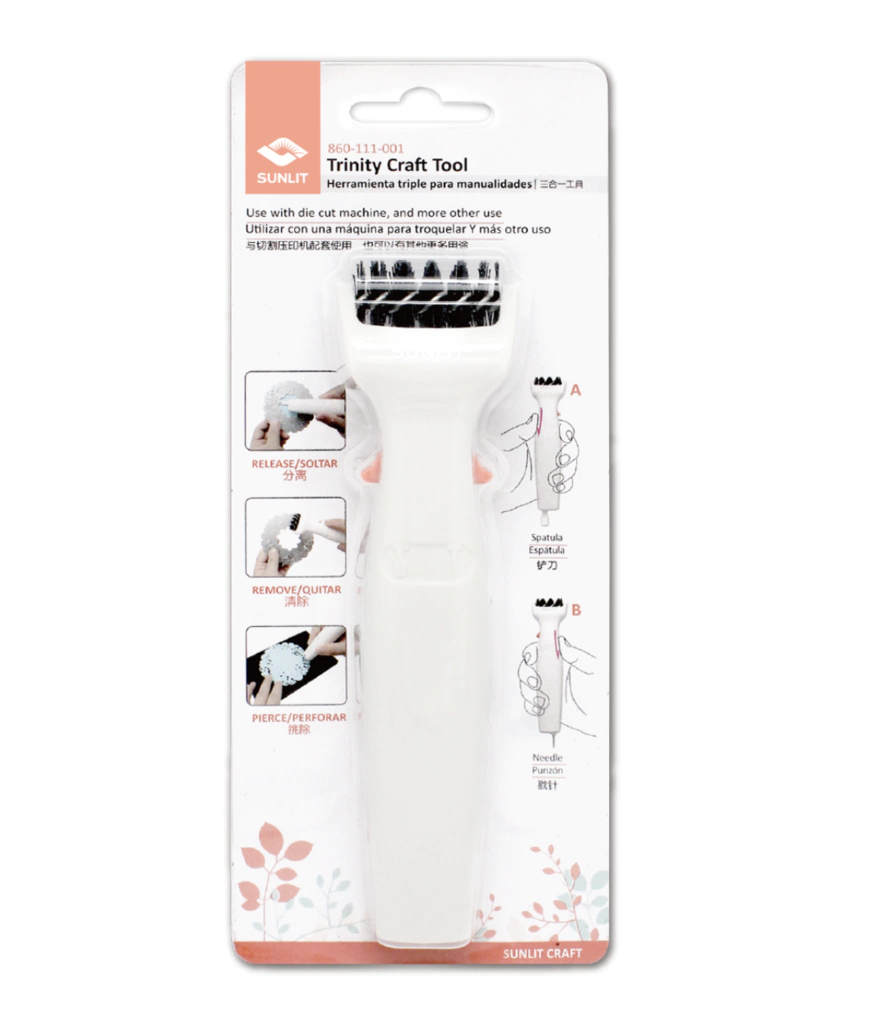 Herramienta todo en uno. Incluye: punzón, espátula y rodillo.