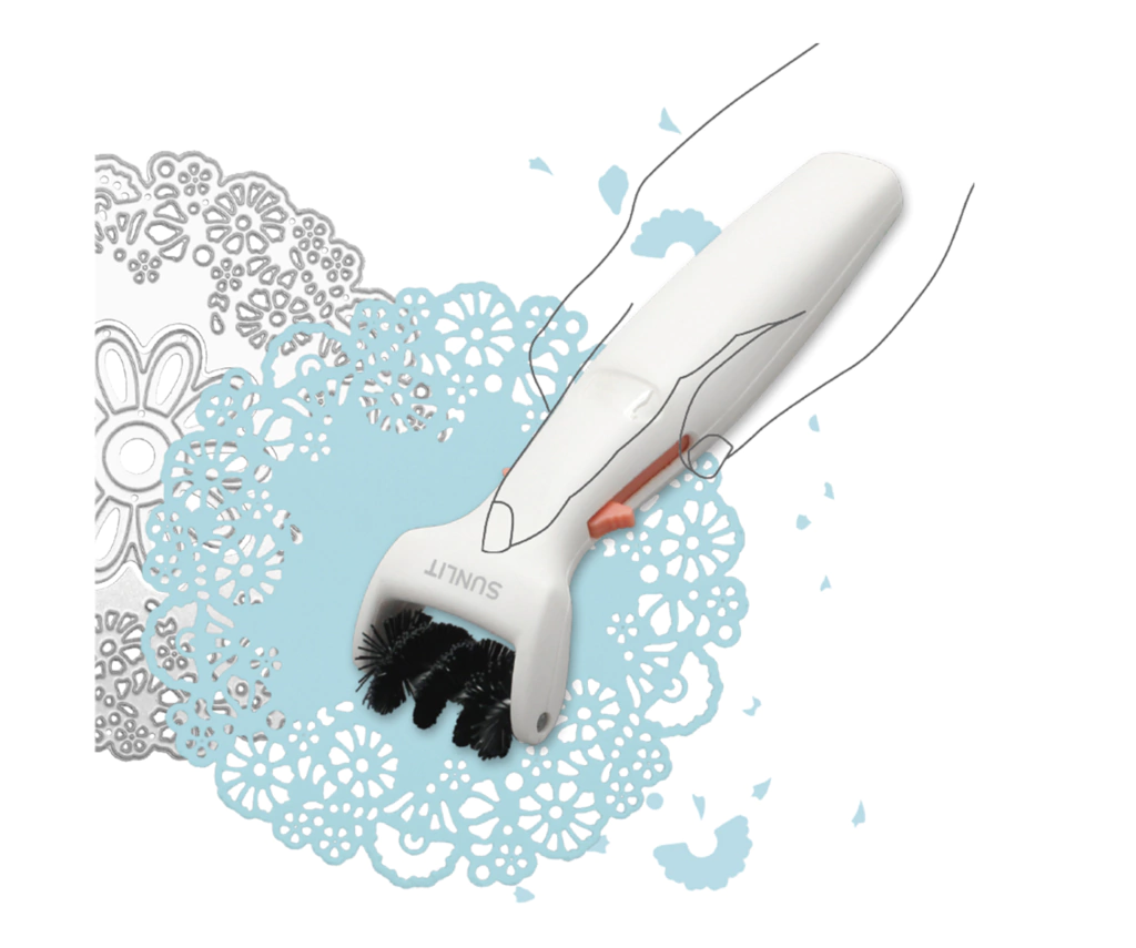 Gracias a sus púas podemos desprender de forma sencilla los pequeños restos de papel que quedan atrapados en el troquel.