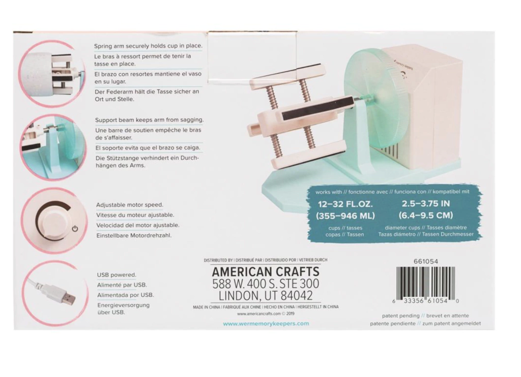 Personaliza tu vaso o taza con esta herramienta de secado rotatoria motorizada.