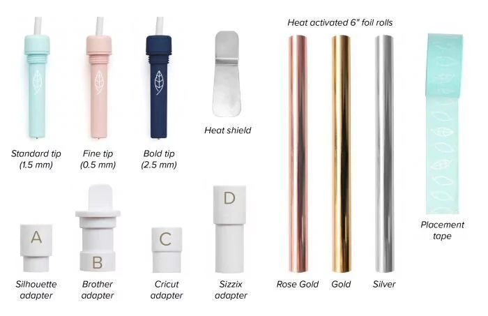 El Foil Quill es compatible con: Silhouette Cameo 3, Silhouette Cameo 2, Silhouette Cameo 1, Silhouette Portrait, Silhouette Curio, Cricut Maker, Cricut Explore Air 2, Cricut Explore Air, Cricut Explore One, Brother ScanNCut DX, Brother ScanNCut (CM650WX, CM350, CM100DM, SDX125, SDX225, SDX125i), Brother DesignNCut (DC200), Sizzix Eclips 2, Sizzix Eclips.