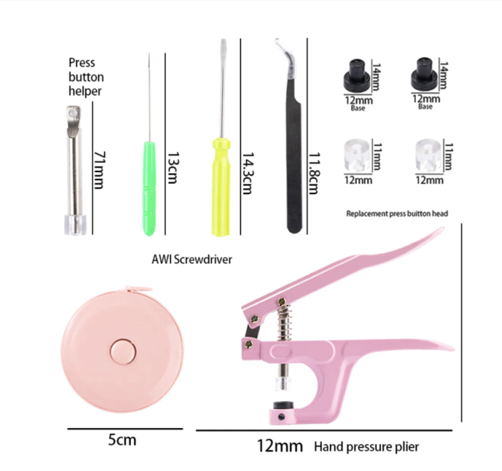 Este Set de 12 piezas es la solución rápida y fácil para aplicar broches de presion a sus proyectos.